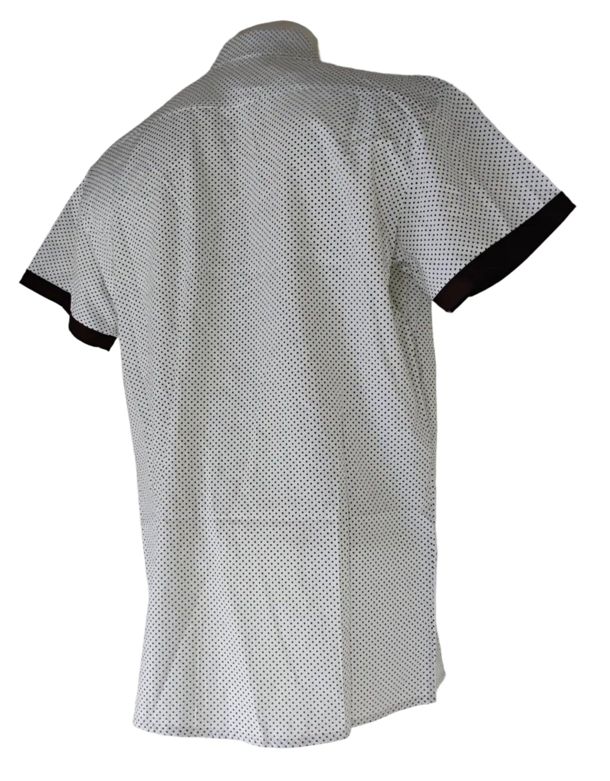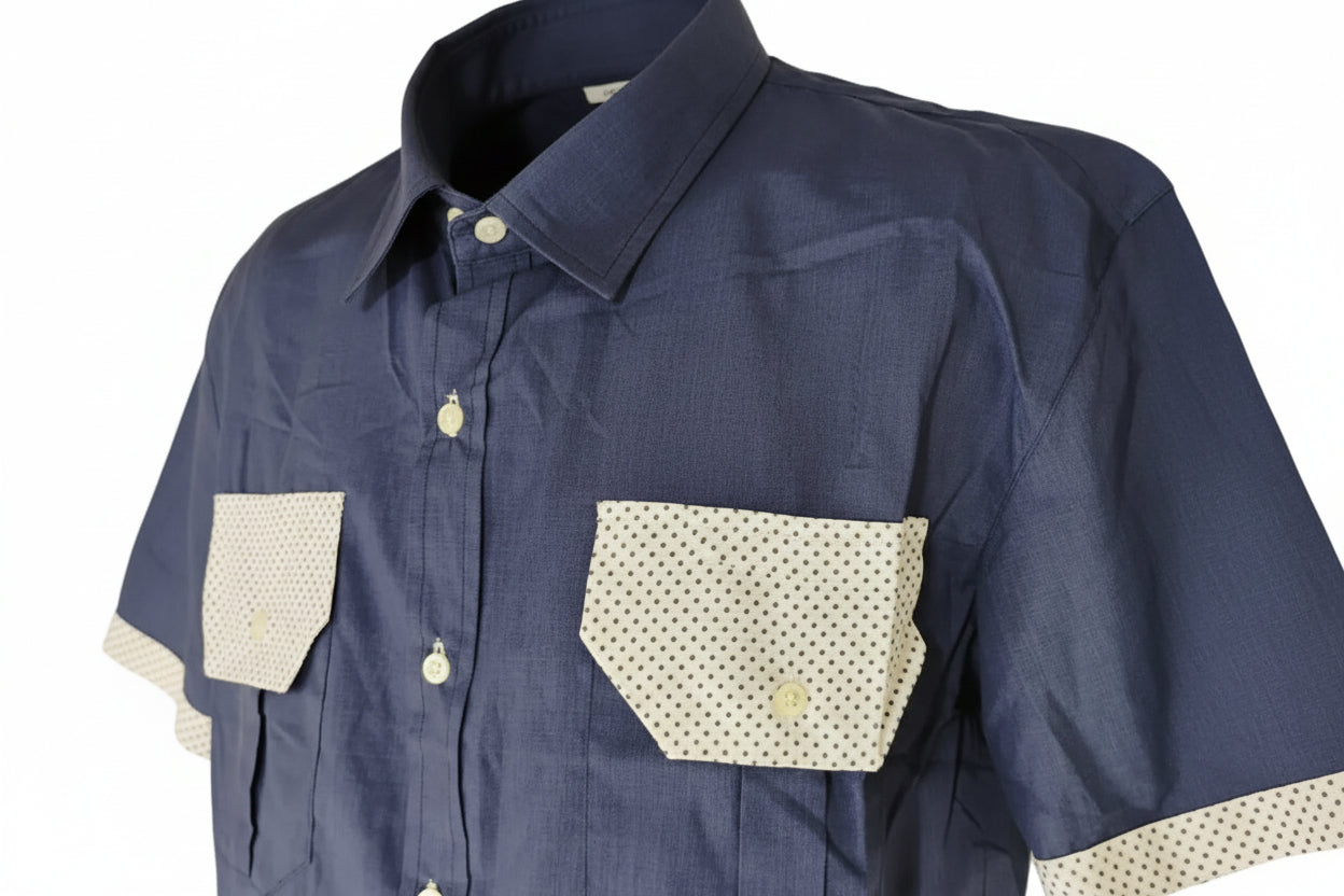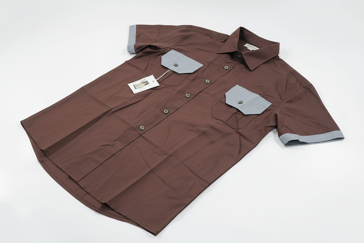 Camasa barbati casual , croita usor trapezoidal , maneca scurta , clape si borduri in contrast