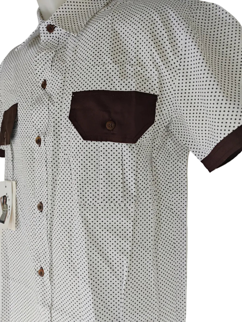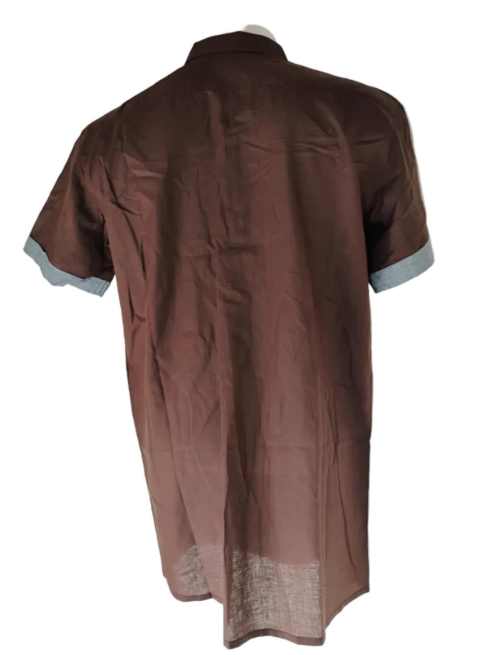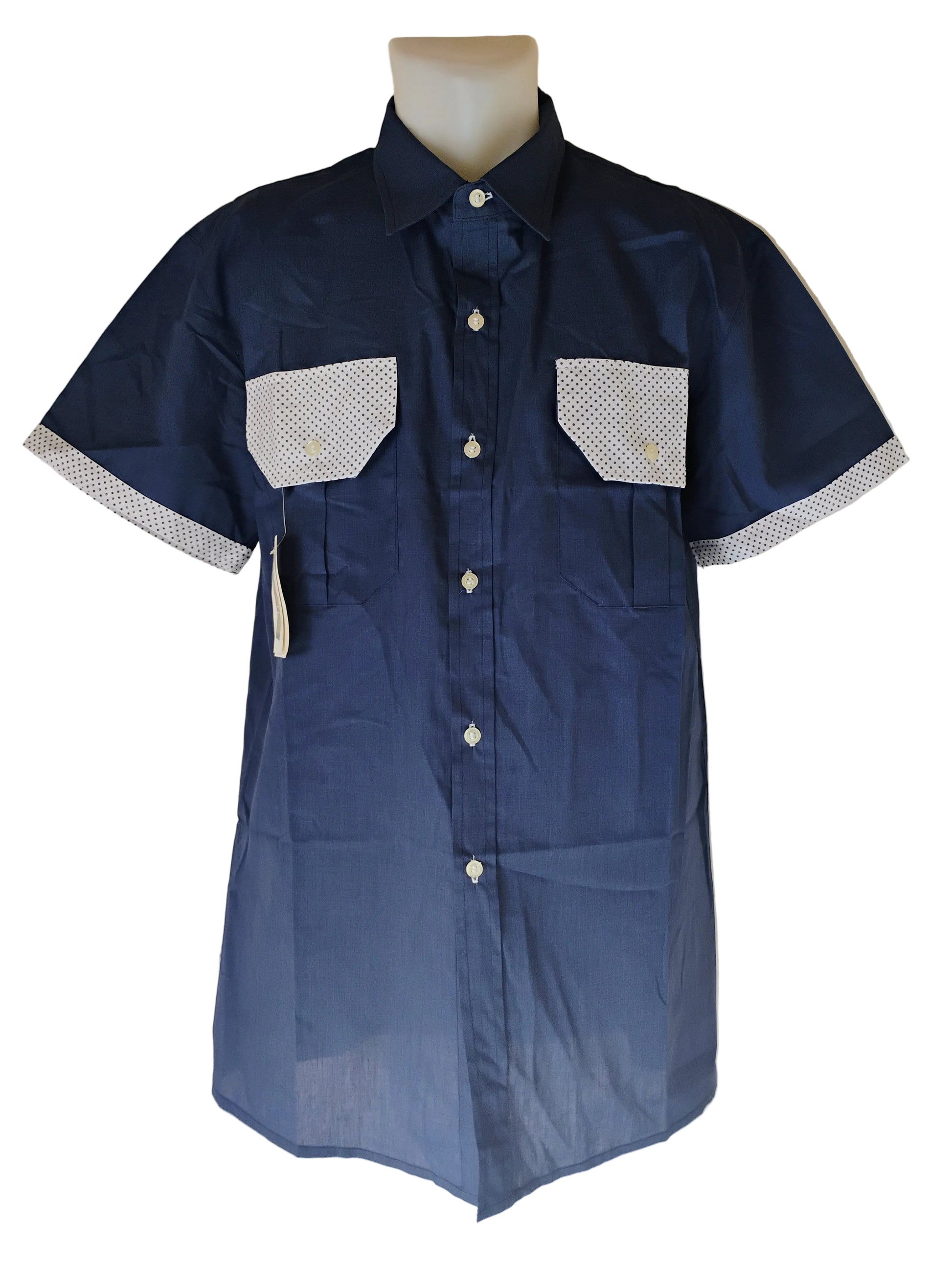 Camasa barbati casual , croita usor trapezoidal , maneca scurta , clape si borduri in contrast