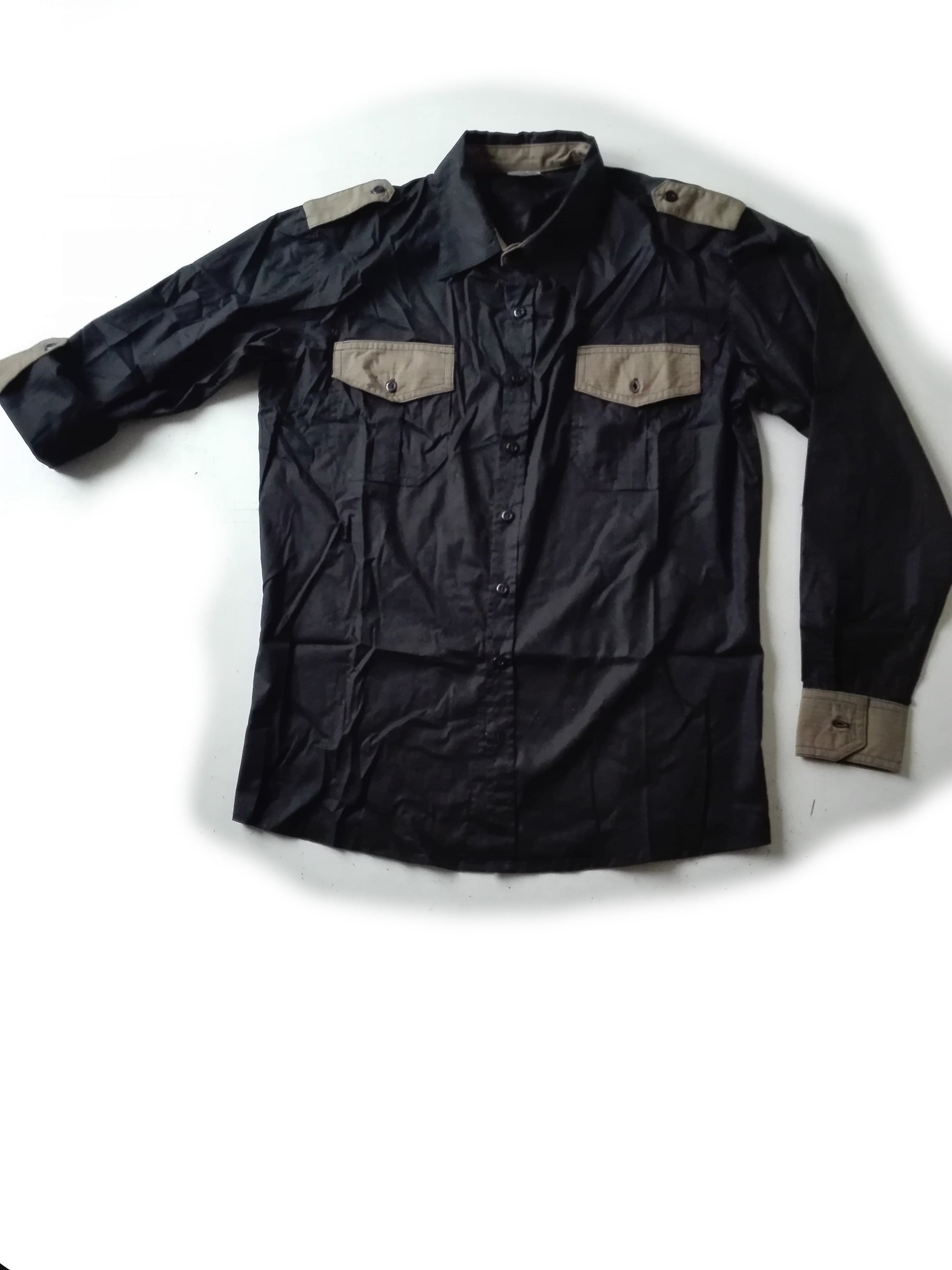 Camasa barbati cu epoleti,mansete si stei in contrast.