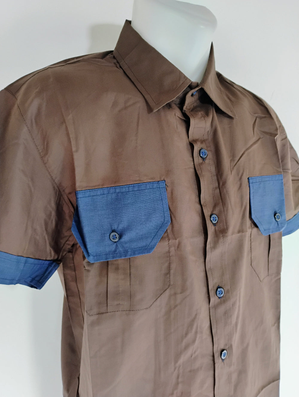 Camasa barbati casual , croita usor trapezoidala , maneca scurta , clape si borduri in contrast